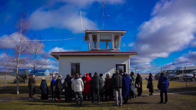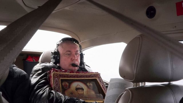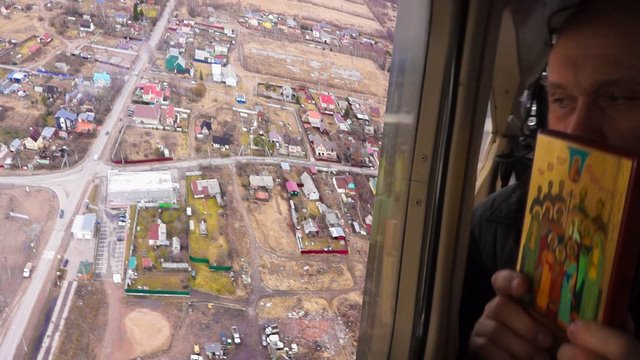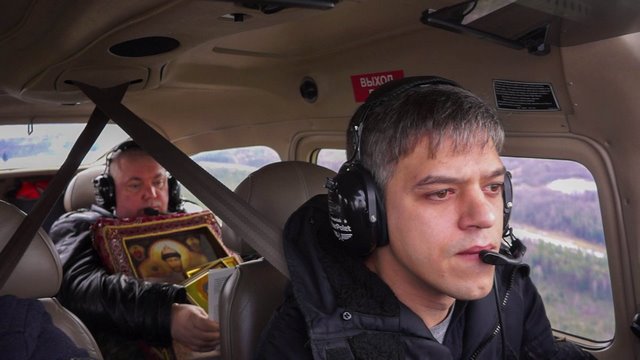 During the entire flight, a group of Orthodox St. Petersburger’s prayed at the airfield near the image of the «Gracious Heaven» of the Holy Virgin, whose holiday on this day is celebrated, as well as before the icon of the Holy Martyr Haralampius, especially revered by the Emperor Paul Petrovich, and the Icon of the Mother of God of Magadan, so that the Queen of Heaven may favorably grant all everything prosperous for today’s flight with the myrrh-streaming icon of Tsar Nicholas! They asked for prayers for Archpriest George, pilot Artemy, cameraman Kirill, warrior Igor.