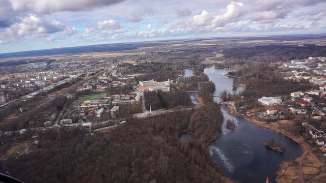 The plane flew around St. Petersburg, over Kronstadt, Peterhof, and Pavlovsk and then continued around Gatchina, an amazing Tsarist place connected with the memory of Emperors Paul the First and Alexander the Third.