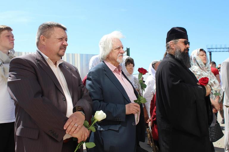 На открытие памятной доски В. В. Сорокиным была принесена икона Святого Царя Страстотерпца Николая Второго, побывавшая в Космосе – копия всемирно известной мироточивой иконы Царя Николая.