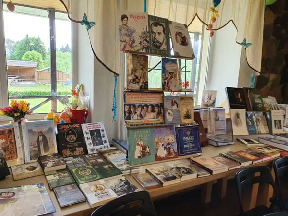 Атмосферу детского праздника создавала, удачно подобранная, музыка, фотовыставка и книжная выставка, посвященная Святой Царской Семье.